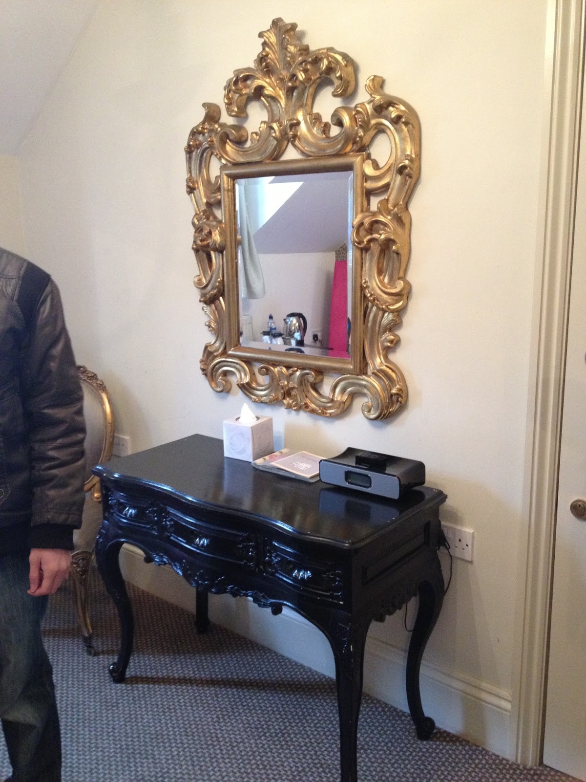 Once you enter the building, the atmosphere is surprisingly very calming which I think is super important if you want a relaxing weekend away. As we checked in, I snapped photos of the interior as it had this 'shabby chic' look which I really love. There were little chalk boards with offers written on them and a beautiful ball-shaped chandelier looking thing hovering above us! The bar and restaurant were to the left so I took a peek through the glass and noticed the suede sofa-looking seats around wooden tables - it was too good to be true!